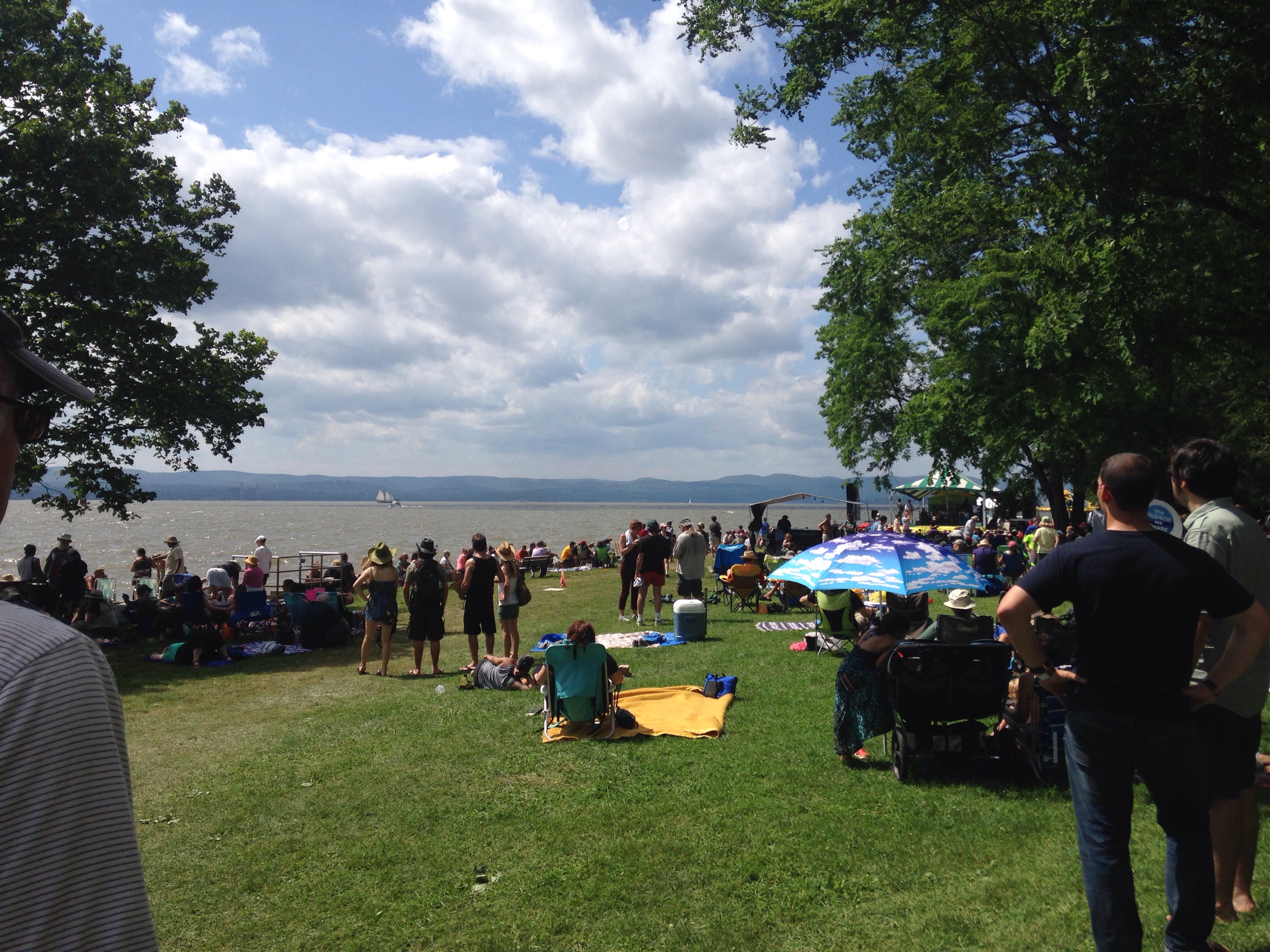 Although thunderstorms had been forecast, Sunday was sunny and hot, and we had a fantastic day at the Clearwater Festival. Clearwater had been started in the 60s by Pete Seeger, with the aim of raising awareness about the pollution and destruction of the Hudson River, and putting pressure on General Electric to reverse the damage done over the decades. This has been effective and the river is now much cleaner.