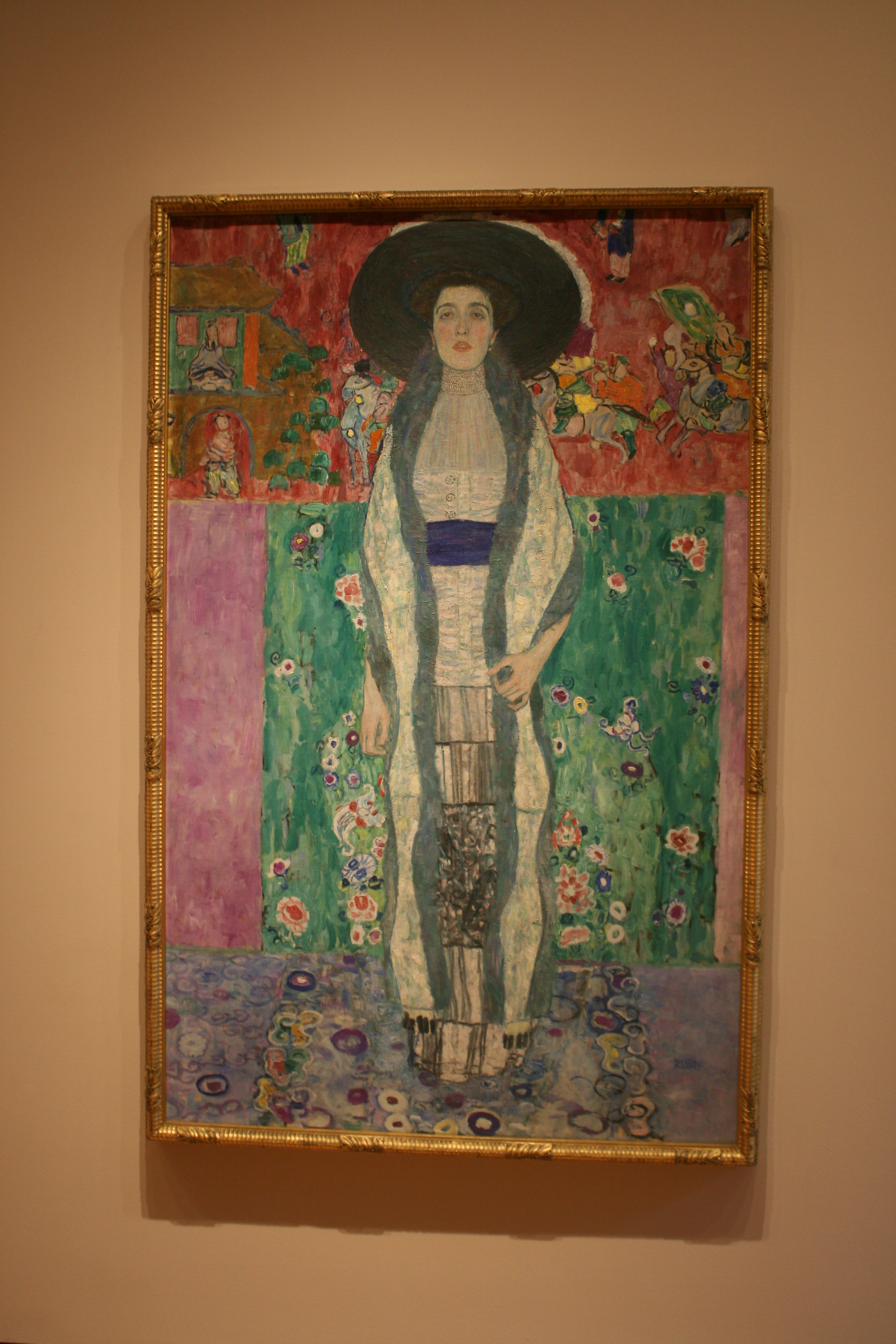 This is Klimt’s portait of Adele Bloch-Bauer, the wife of a prominent Vienna industrialist. The painting was taken by the Nazis in 1938, and only returned to the family heirs in 2006. It is on loan to MoMA from the present owner.