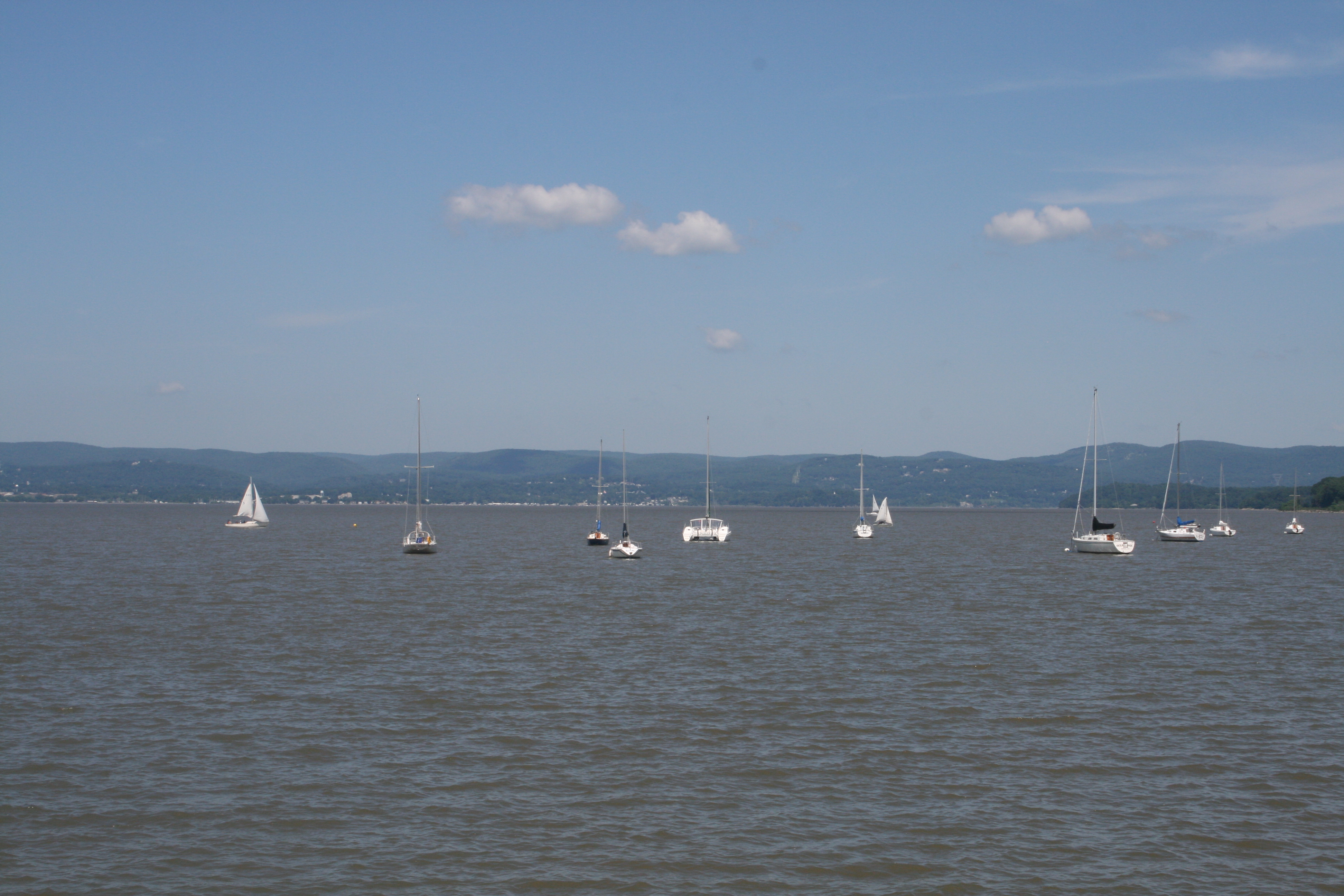 Once we were properly into the Hudson River, things calmed down and perhaps because the immediate stress and danger was passed, the dramamine I’d taken as a precaution against motion sickness kicked in and I slept for the next two hours, waking up only half an hour before we got to Half Moon Bay Marina, where we were staying at Croton. We were consoled to find some other ‘Loopers’ there who had also made the trip from Great Kills that day, who had found the journey just as surprisingly difficult as we had.