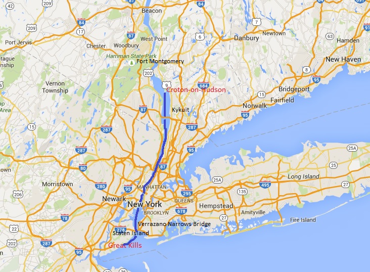 We were feeling quite confident about the journey from Staten Island to Croton-on-Hudson, 20 miles north of New York, on the east bank of the Hudson River. The forecast was waves of one foot, wind speeds around 10 knots, both well within Carina’s, and our, capabilities.